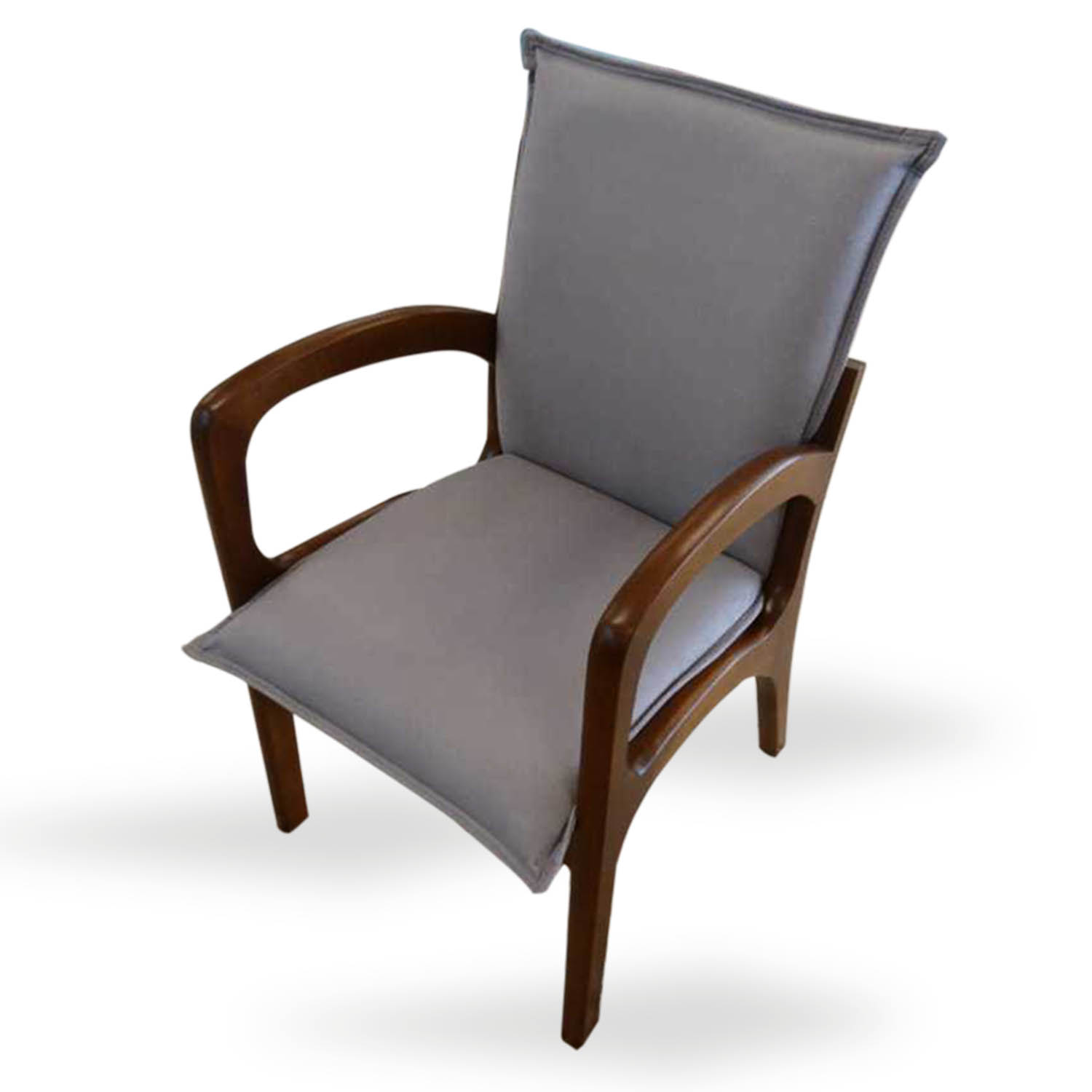 CADEIRA CHARLOTTE COM BRAÇO PÉS CASTANHO E TECIDO COR CINZA RATO GR 10