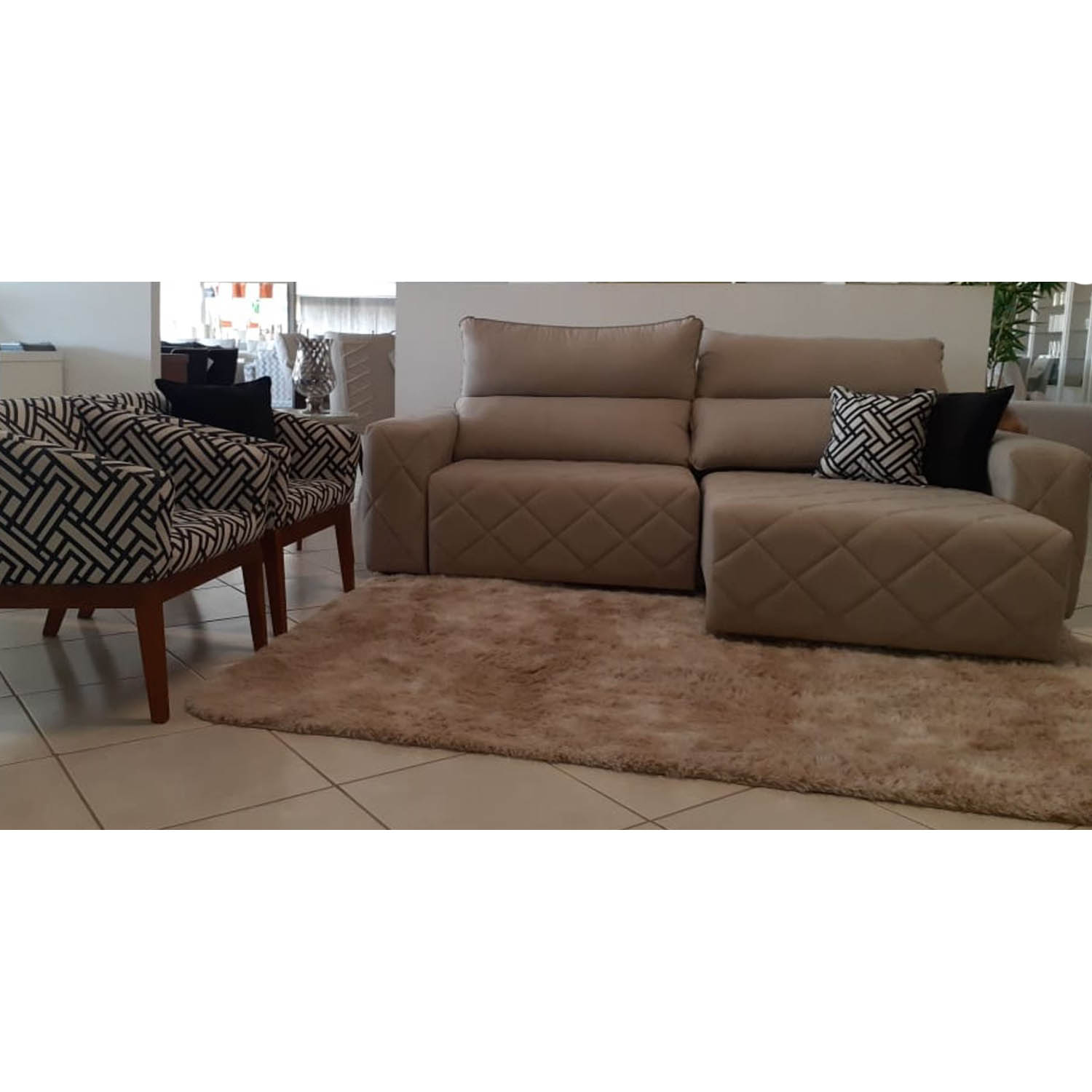 O Sofá Pérola é retrátil, reclinável, espaçoso, confortável, possui um design moderno e combina com vários estilos de decoração.